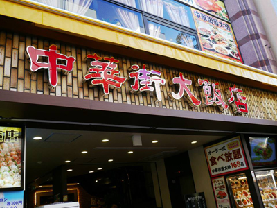 JR石川町駅から西門(延平門)をくぐり徒歩3分。左側大きな赤い文字の「中華街大飯店」(1)さん。